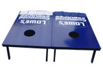 * Spec: Two 24’’*36’’ Solid Wood Game Boards * 8 Bean bags (2 set of 4) filled in with Sand. * All boards have 2 legs that rotate out (to play game) or under board (for storage)