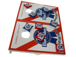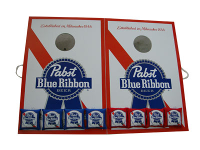 * Spec: Two 24’’*36’’ Pine Wood Game Boards * 8 color Bean bags (2 set of 4) filled in with Corn * All boards have 2 legs that rotate out (to play game) or under board (for storage)