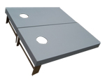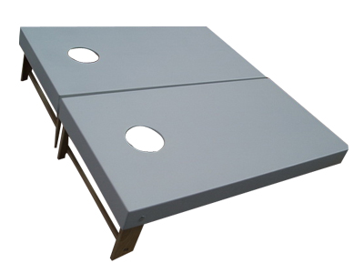 * Spec: Two 24’’*48’’ Pine wood Game Boards * 8 Bean bags (2 set of 4) filled in with Corn. * All boards have 2 legs that rotate out (to play game) or under board (for storage)